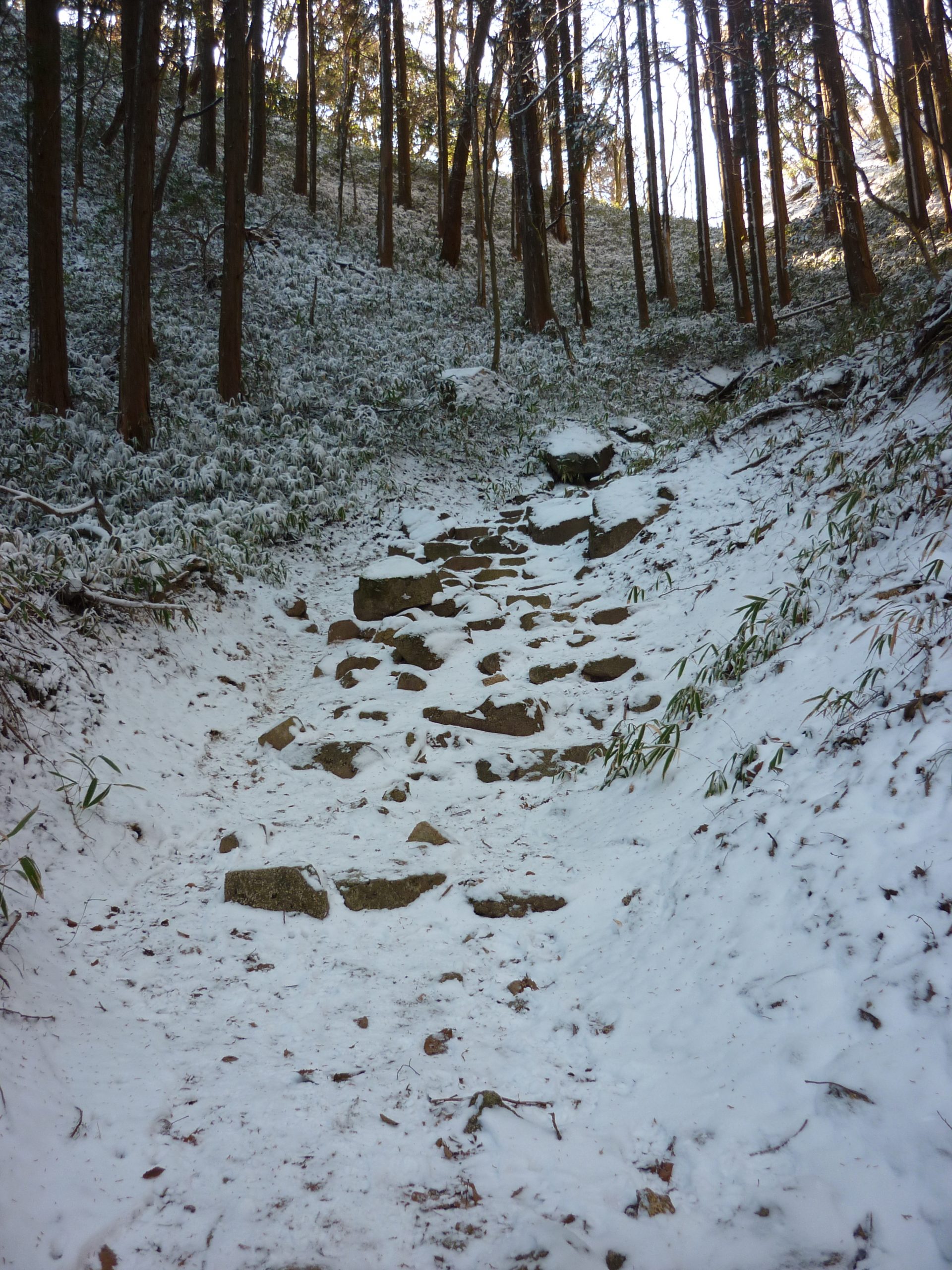 1月2日に一人で初登りをした。コロナで遠くに行けないので,六甲山。12月30日に寒波で降雪があるという話だったので,雪山を期待。有馬温泉駅9:40発→紅葉谷→旧極楽茶屋→11:45六甲山最高峰931m→魚屋道→13:40着有馬温泉駅。登りの紅葉谷は写真のような感じで,積雪2~3cm程度。日の良く当たる山頂は気持ちだけ雪面。下りの魚屋道は上部のみ若干の積雪ありで,すぐに消えていた。雪は期待ほどはなかったが,天候・展望が良く,しばらくぶりに気持ちのいい山歩きができた。六甲山はいろいろなルートがあるし,登山口までのアプローチも良く,無理に早起きしなくても気軽に登れるありがたい山だ。コロナ禍以降,もっぱら六甲山のお世話になっている。もう少し真っ白の六甲山になったら,また北側面を中心に紅葉谷付近を登ろう。なお雪の六甲山を登ろうという方は軽アイゼンを持って行った方がよいと思う。